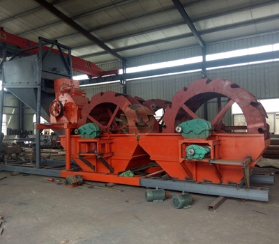 轮式洗砂机具有洗净度高,结构合理,处理量大,功耗小,洗砂过程中砂子流失少,尤其是洗砂机传动部分均与水、砂隔离,故其故障率大大降低。