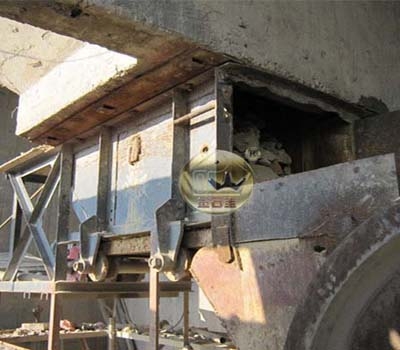 该机主要由以下几个主要部件组成,电动机、减速机、联轴器、偏心机构、漏板、槽架、滚轮等。该种设备一般安装在料仓出料口下部,矿石落入槽体底部的漏板上,底部漏板设置在滚轮上,并通过偏心机构使漏板与双出轴的减速机相连接,然后通过联轴器与电动机相接。工作时,由电动机通过联轴器带动减速机,并通过偏心盘与设备在槽架底部和滚轮之间的漏盘一起做往复直线运动,从而完成均匀给料。