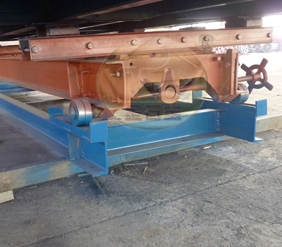 1、电机   2、减速机   3、底座   4、调坡机构  5、托架  6、床面  7、滑动机构
