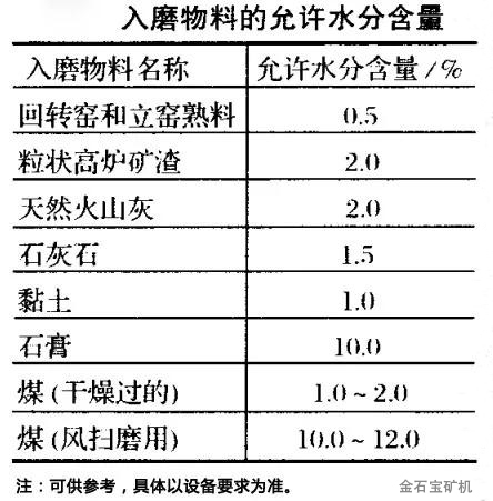 4、入磨物料水分过大