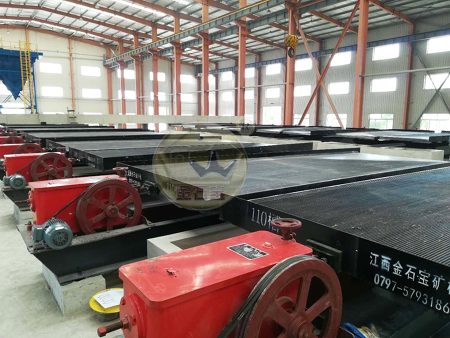 我司生产6-S摇床及云锡式摇床。6-S摇床的突出优点是原矿经过一次选别即可得到精矿,中矿和废弃尾矿,可同时接出多个产品。精矿的富集比高,选别效率高,易于维修、便于调节冲程。